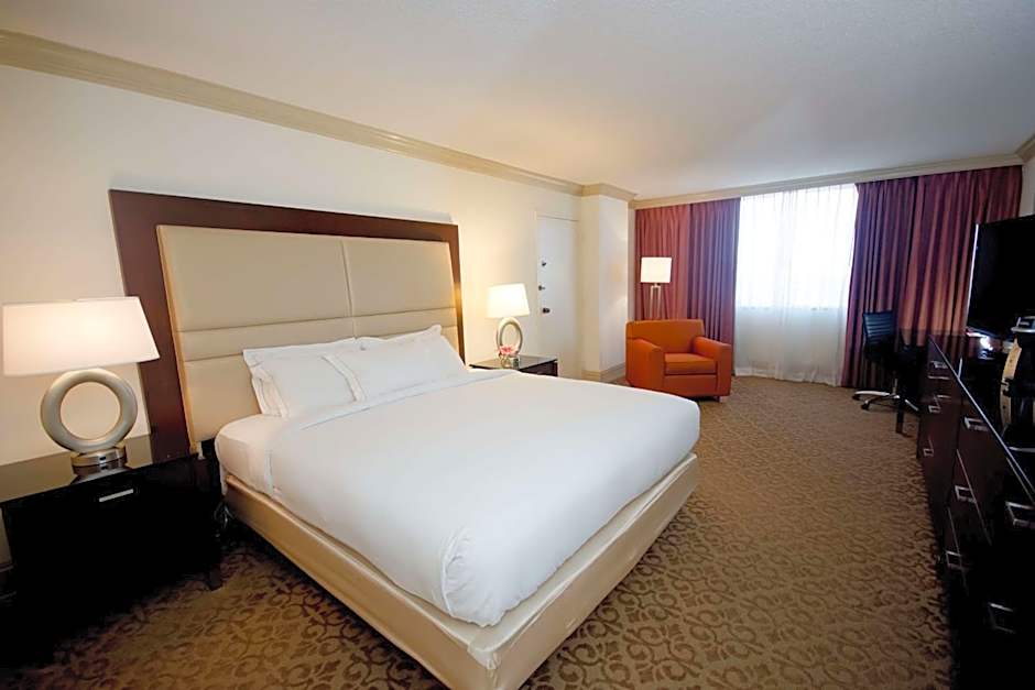 This room is furnished with one king bed and includes a flat-screen TV, safety deposit box, and coffee-making facilities.